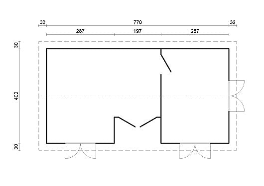 Udvendig mål: 3.86 x 7.70 m