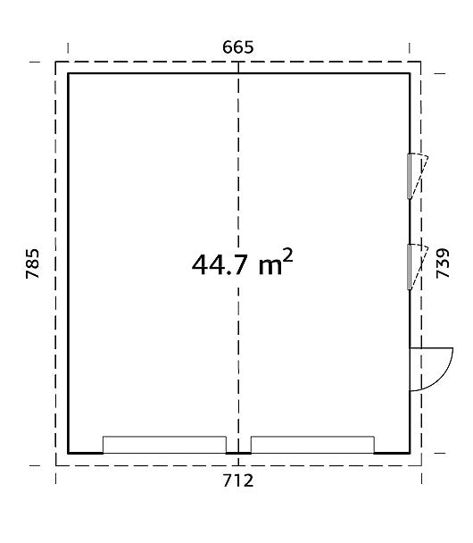 Udvendig mål: 6,65 * 7,39 m